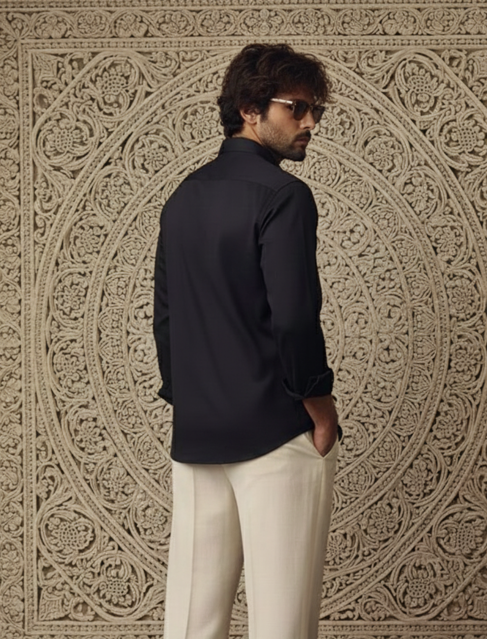 The minimal black base highlights the detailed Ram Darbar artwork, symbolizing unity, loyalty, and divine balance. Designed with a modern silhouette, this shirt blends traditional reverence with contemporary elegance — making it suitable for both spiritual occasions and elevated everyday wear.