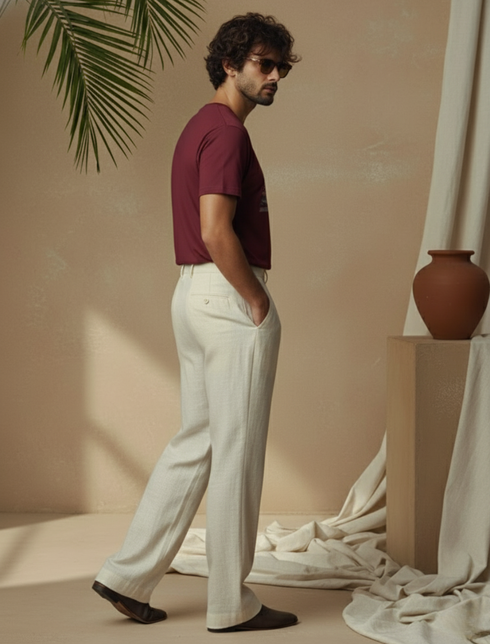 The design features a meditative silhouette set against a radiant sun motif, elevated with a gold finish print that adds depth, elegance, and sacred presence to the artwork. The rich maroon tone enhances the spiritual aura, making it a powerful yet wearable statement.